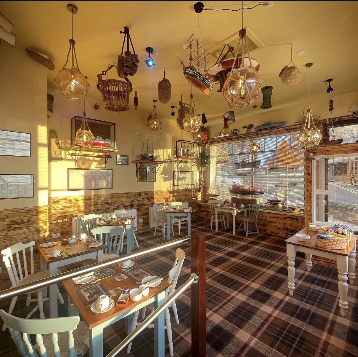 Our large, cosy breakfast room with sea views. We have parking available on site.