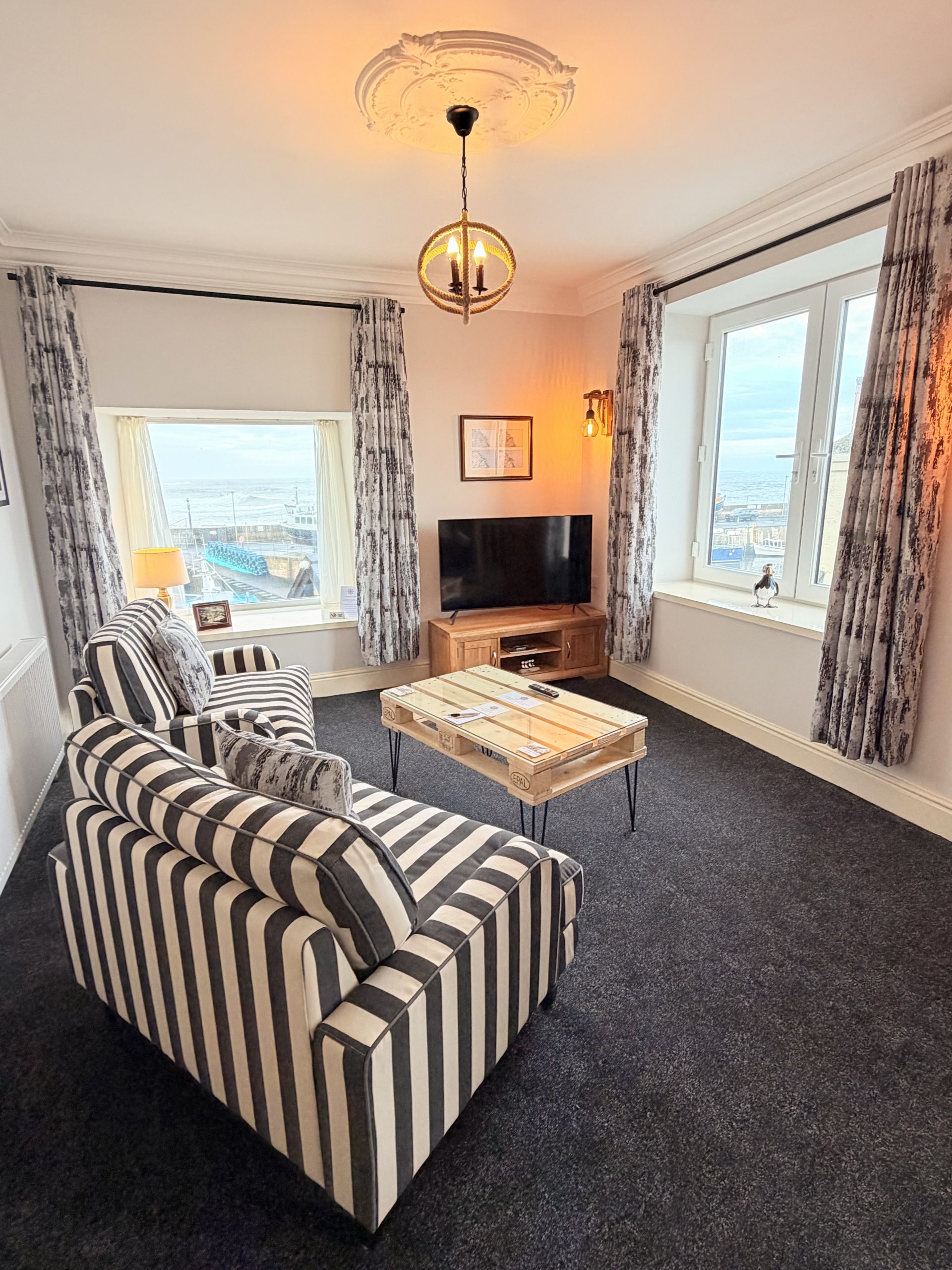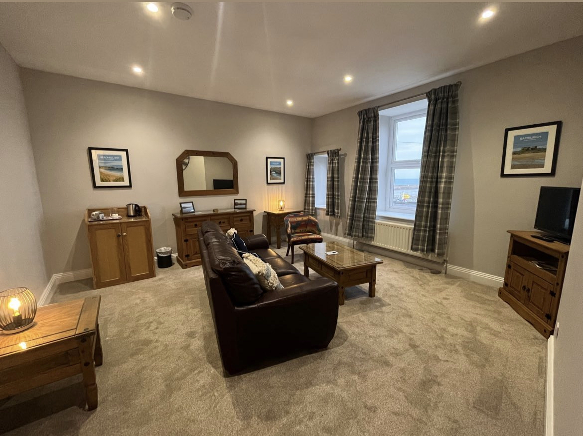 A first floor, king size suite with panaramic views of the harbour, Farne Islands,